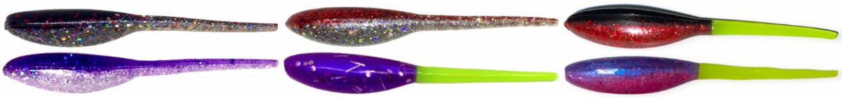 Bottom: 'purple shad', 'grapevine', 'cotton candy'