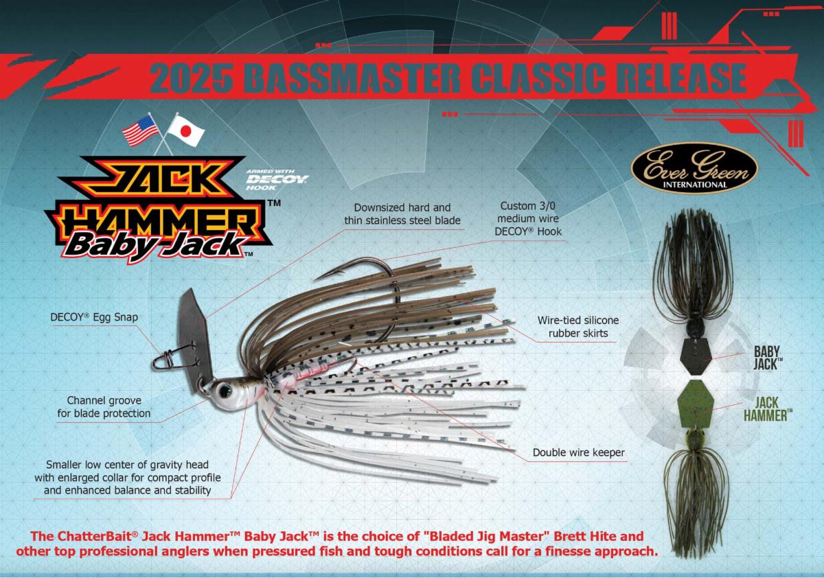 If there was a time if year for it, this is it! This is the smaller version of the #1 bladed jig on the planet (for bass), the Z-Man Evergreen JackHammer. The Baby Jack comes in 1/4, 3/8 and 1/2-oz. I've used the 1/4-oz, and it truly acts like a full-size JackHammer.