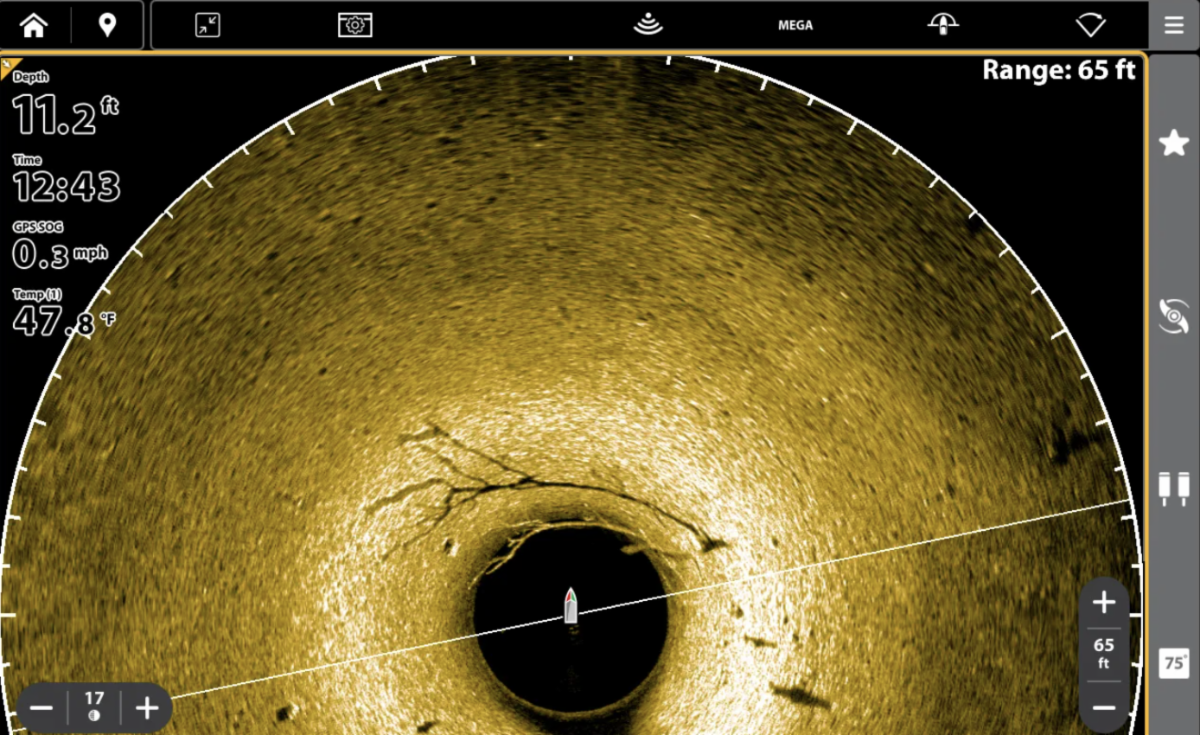 Btw, have you utilized Humminbird MEGA 360 sonar for finding crappie targets? You can see Terry's 360 in the pic below, and it looks like you might even be able to see some crappie roaming around.