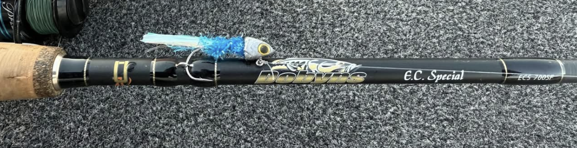 > "We fish them on 6-8-lb fluoro. I don't want any give, so I use a 6' dock-shooting rod. Stiff blanks throw these baits a mile and a half, then set hooks with authority.