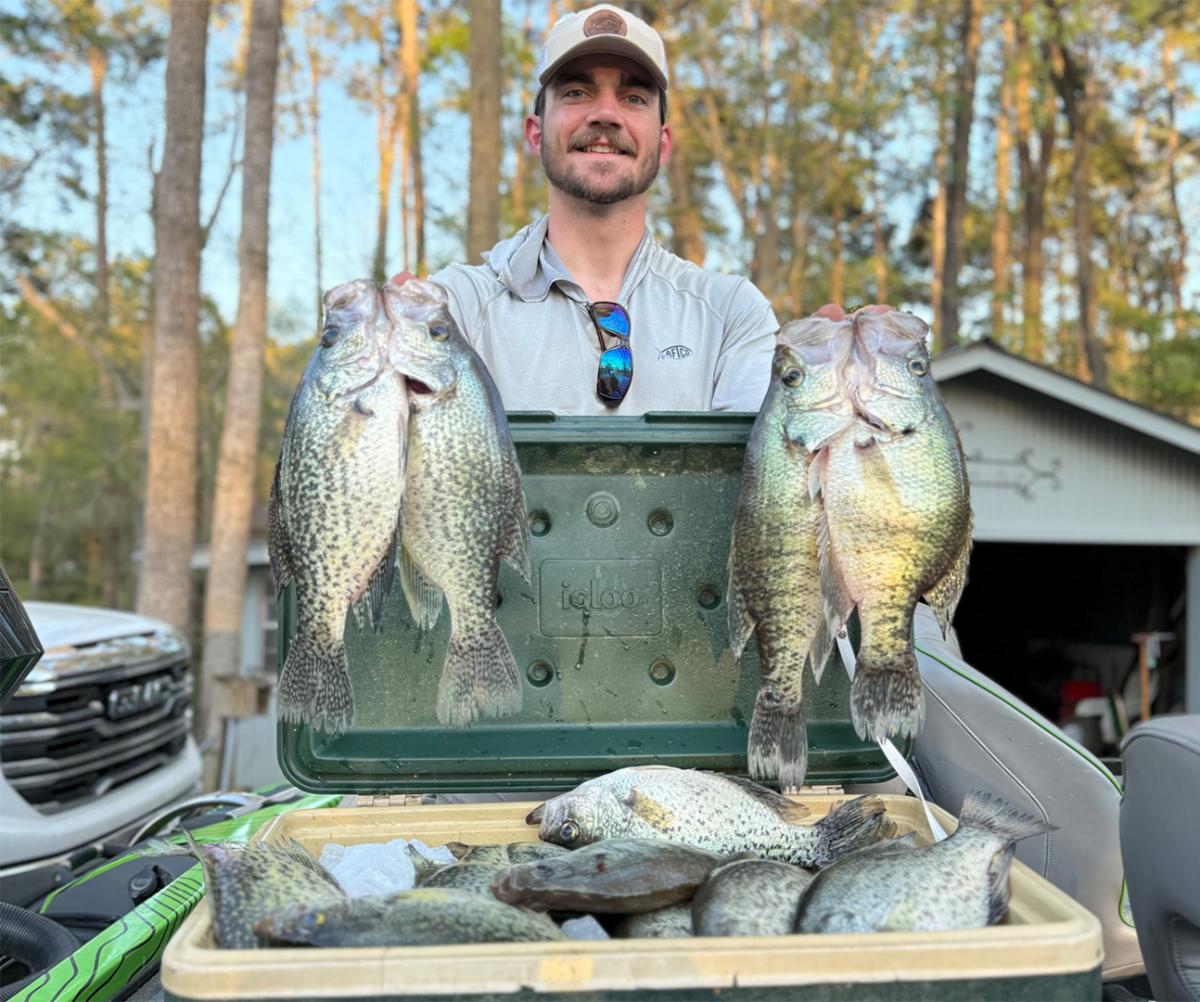 I also had the privilege of getting out on the lake with another one of the best crappie pros in the game right now, Kayle 'need for speed' Ward. Why'd I add "need for speed"? This dude covers more water on the trolling motor than anyone I've ever seen – a big key to his success.