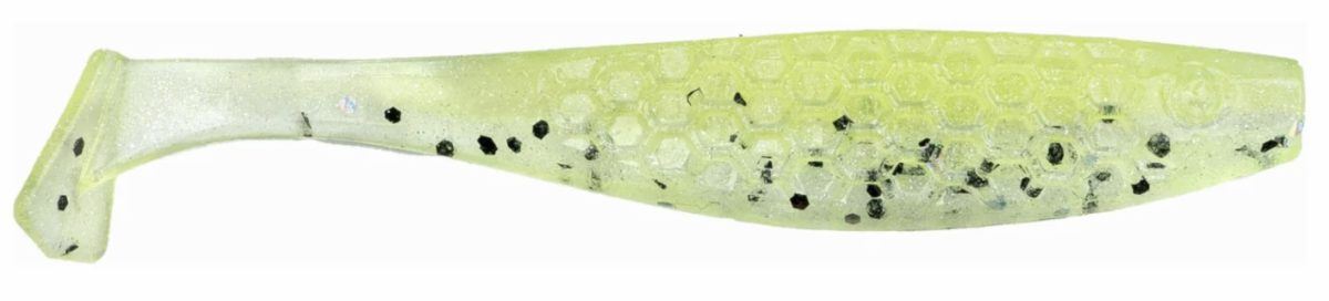 Every GLF baits is matte, so no 'plastic-y' shimmer to 'em. Definitely something to give crappie that 'ol reliable minnow profile with a little twist.